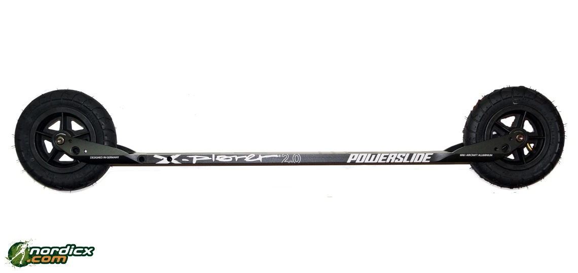 aluminum frame is very similar to an xc-ski. For us, the Powerslide X-Plorer is the most stable and xc-ski-like rollerski on market, of all 150mm rollerskis. You like to ski Off-road and On-road? – For both skiers nordicx.com also recommends the 100mm training rubber wheels. You simply